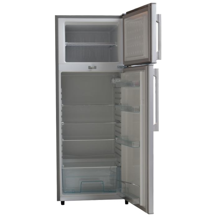 Built for family use with efficient direct‑cool performance a large freezer with a mesh shelf, adjustable glass shelves, and a spacious crisper keep food organised and fresh. Door racks, adjustable thermostat, interior lamp and a lockable door round out daily convenience. Capacity 213L.