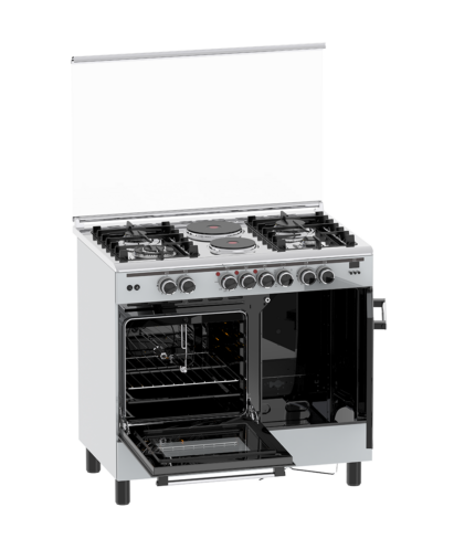 - Hybrid hob: The appliance provides flexibility with three gas burners for quick, controlled heat and one electric hotplate for slower, steady cooking.